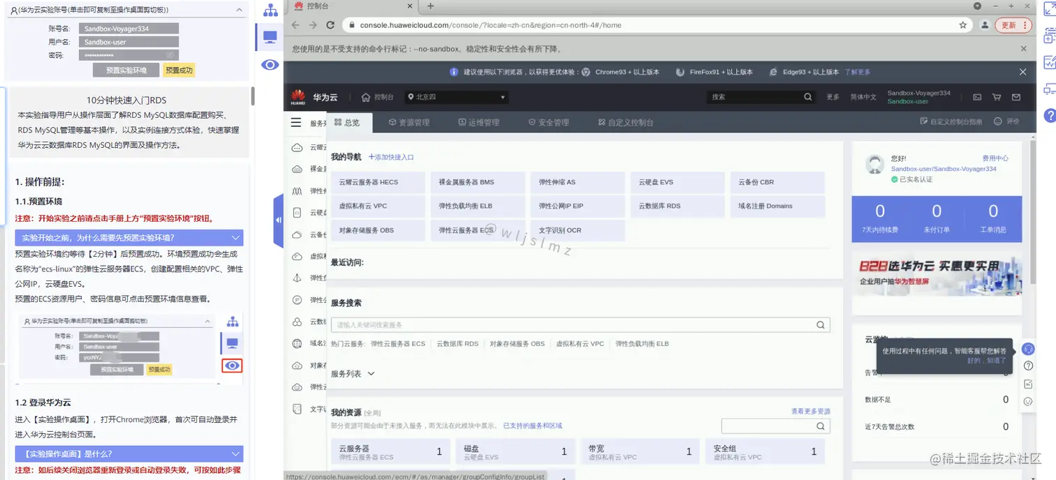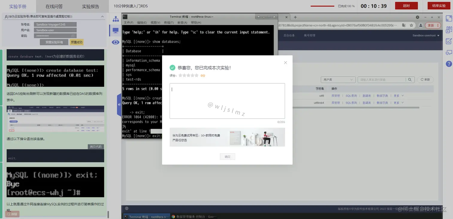 如果大家对华为云RDS感兴趣,但是又不想花钱试用,那么可以进行沙箱实验先体验一下。