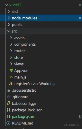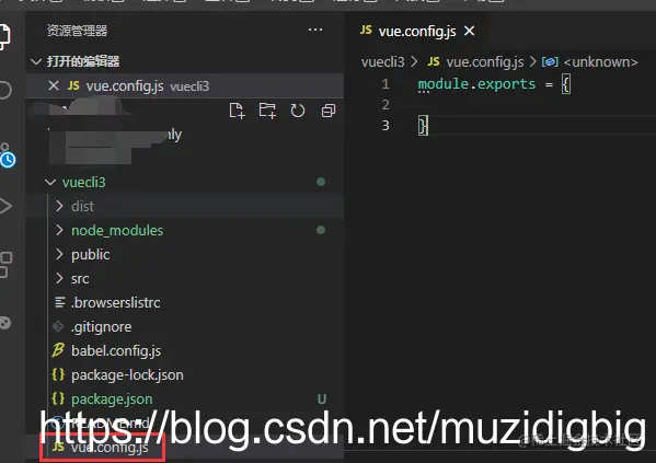 创建好项目后会发现找不到webpack.config.js配置文件,这是vue-cli3不想让我们随意看到配置文件隐藏起来了,可以通过在根目录下创建一个vue.config.js(名字固定)来添加我们的配置(在运行时会自动添加到webpack.config.js文件上)