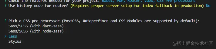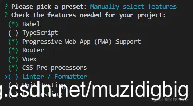 - Check the features needed for your project - 选择上 TypeScript ,特别注意点空格是选择,点回车是下一步