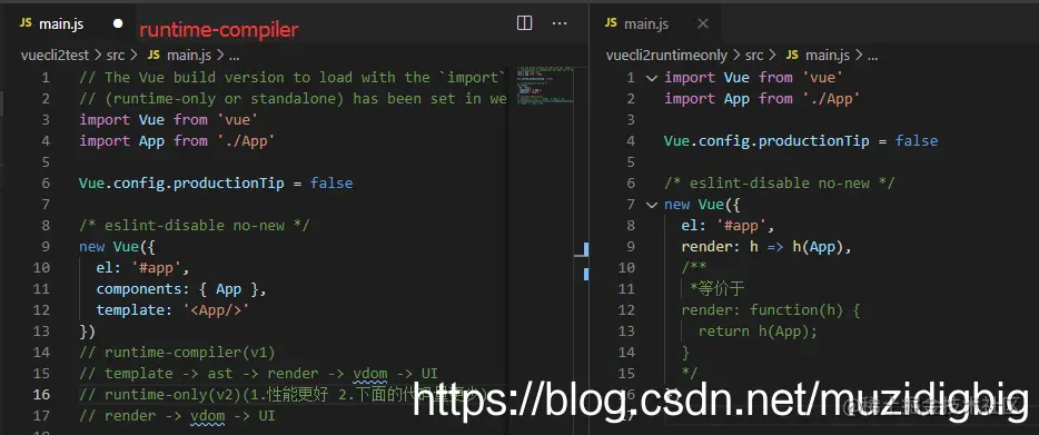 runtime+compiler和runtime-only的区别:在main.js文件中