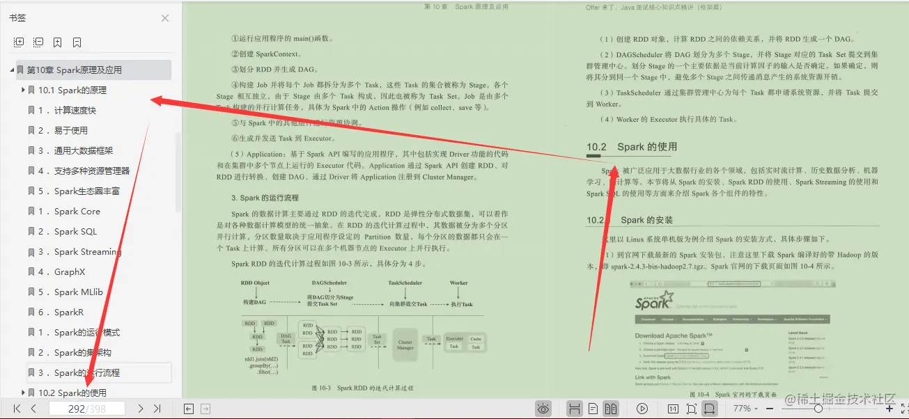 第10章讲解Spark原理及应用,涉及Spark特点、Spark模块组成、Spark 运行机制,以及Spark RDD、Spark Streaming、Spark SQL、DataFrame、 DtaSet、 SparkStructured Streaming 的原理和使用等内容;
