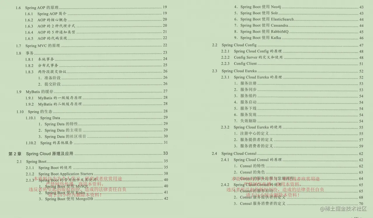 第1章讲解Spring原理及应用,涉及Spring loC原理、Spring AOP原理、Spring MVC原理、事务、MyBatis缓存等内容;