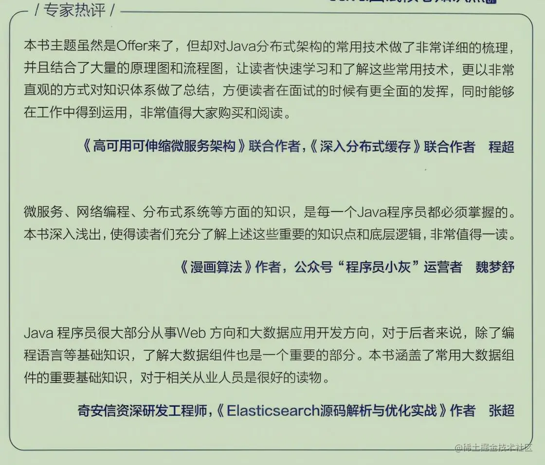 可作为Java程序员的技术面试参考用书,也可作为Java程序员、大数据开发人员、技术经理和架构师的日常技术参考用书。