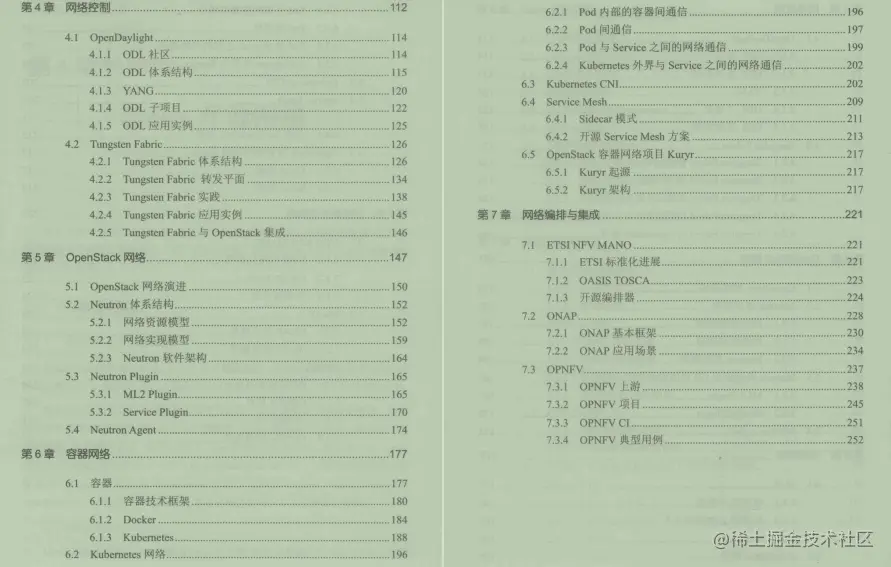 第4章讨论网络的控制面,并介绍主要开源SDN(软件定义网络)控制器,包括OpenDaylight与Tungsten Fabric等。