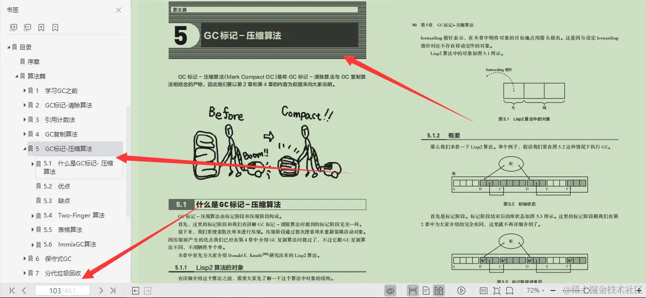 5 GC标记-压缩算法: GC标记-压缩算法(Mark Compact GC )是将GC标记-清除算法与GC复制算法相结合的产物,因此我们要以第2章和第4章的内容为前提来向大家说明。
