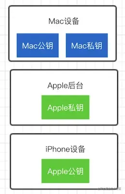 Mac设备的公钥和私钥,一般是Mac设备自己生成Apple官方的私钥,保存在Apple的后台Apple官方的公钥,每一台iPhone出厂之后都会保存Apple官方的公钥信息