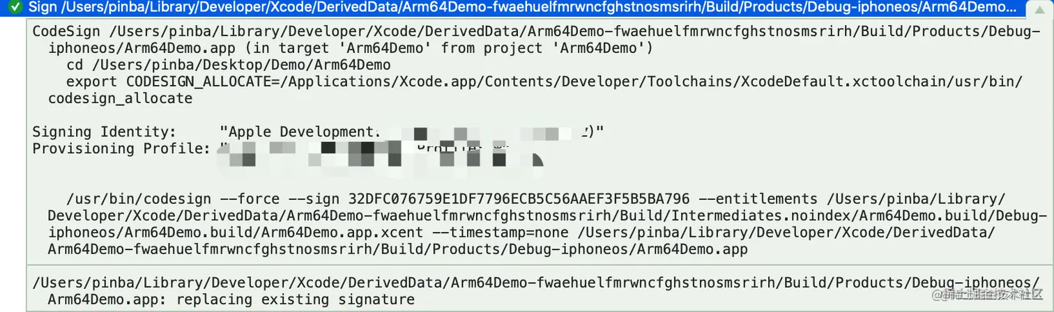 要想知道上述所有文件的具体作用,就需要了解iOS签名的完整流程。在使用Xcode编译、运行完项目之后,Xcode其实帮我们做了签名操作。可以通过查看xcode的build信息
