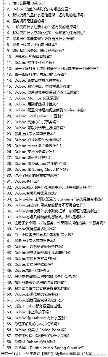 Dubbo 部分的面试题题目