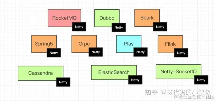 Netty 是互联网中间件领域使用最广泛最核心的网络通信框架。上图中可以看到,几乎所有互联网中间件或者大数据领域均离不开 Netty,掌握 Netty 是作为一名初中级工程师迈向高级工程师最重要的技能之一。