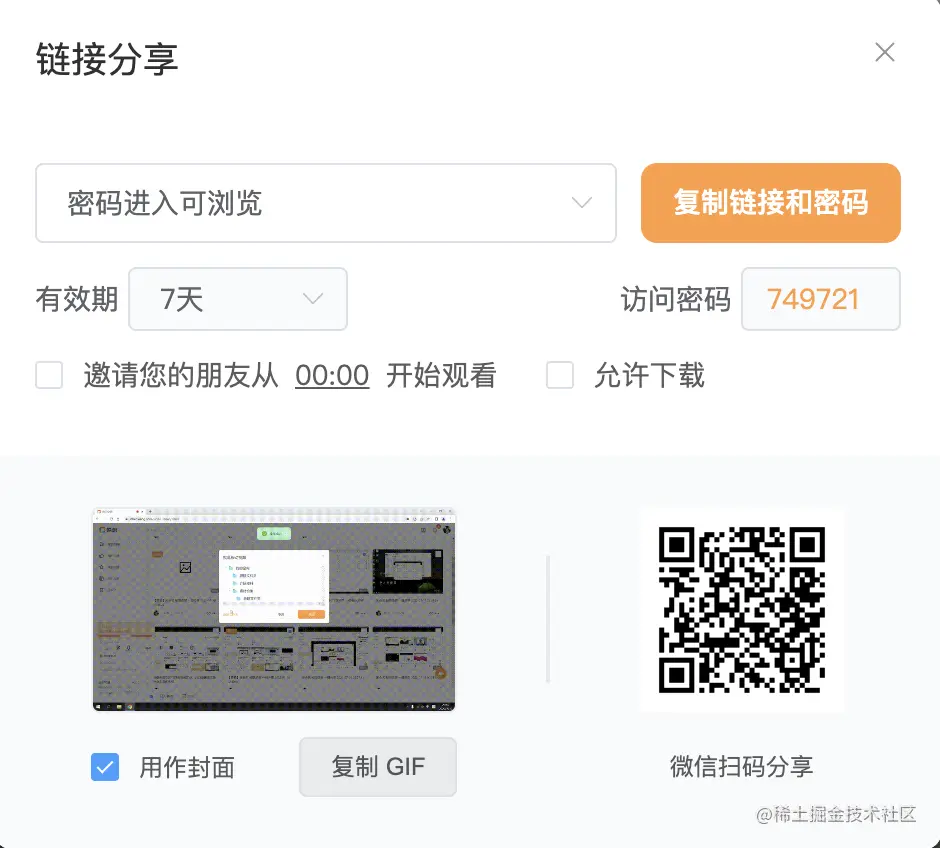 相对于传统录屏软件,我觉得无论是帧想还是loom,最大的价值在于能够直接分享。无论是复制链接,还是微信扫码,视频可以直接转给小伙伴,他们直接在微信、飞书消息里就看完了(难怪要说是视频消息),这就省去了上传云盘的时间啦,确实做到了老板说的“方便分享,能够复用” ~