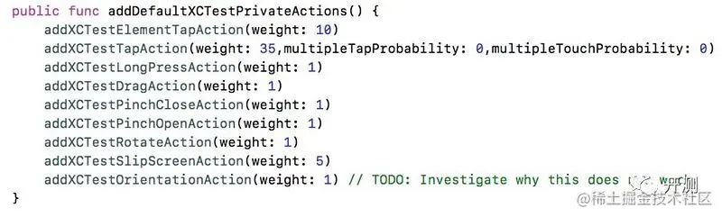 在addDefaultXCTestPrivateActions接口里可以配置Monkey测试包含哪些操作,可选操作如图: