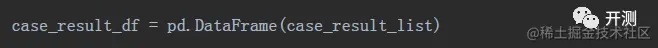 我们将每次返回的结果,按照case的格式拼接成一个字典,就是我们的结果数据,将每个结果字典再存储到一个列表中,就得到了整个的结果字典列表,我们将它命名为case_result_list,这时,我们再次使用pandas库,可以把这个列表转换为dataframe格式: