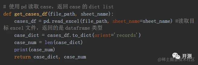 如何读取Excel,获取其中的case呢?我们使用了python中的pandas库。这个库很强大,有很多处理数据的方法,我们在这只使用其中读取excel的方法,具体代码如下: