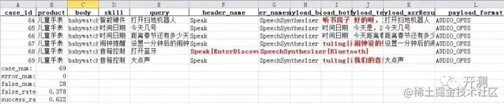 最后得到的测试结果如下,通过使用openpyxl,我们还可以在结果中追加行,增加一些测试结果的统计信息,如case数、error数,错误率正确率等。