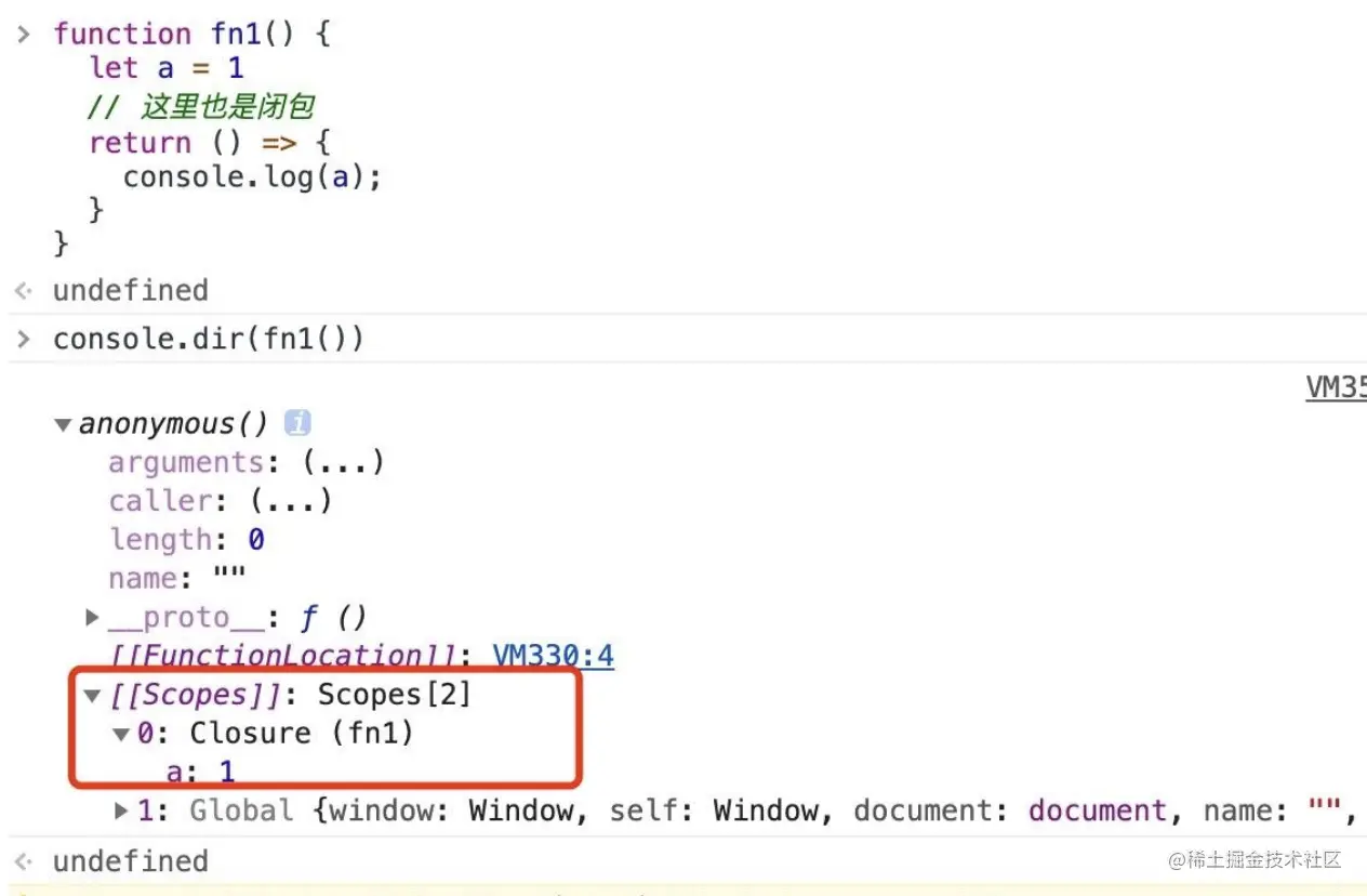 图中的 [[Scopes]] 是个数组,作用域的一层层往上寻找就等同于遍历 [[Scopes]]。