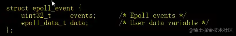 struct epoll_event events[MAXEVENTS]; // 存放有事件发生的结构数组。