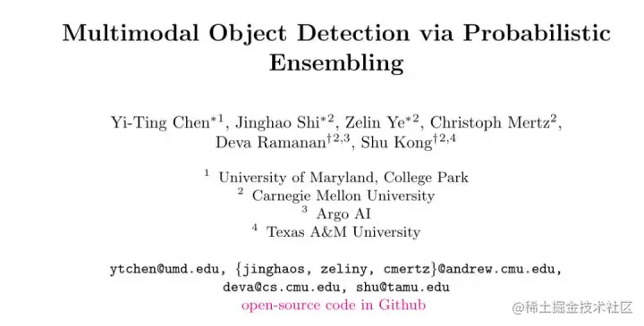前言 本文研究了使用RGB和热敏相机的多模态目标检测,提出了一种融合不同模态信息的策略——概率融合技术ProbEn,融合来自多模态的检测。