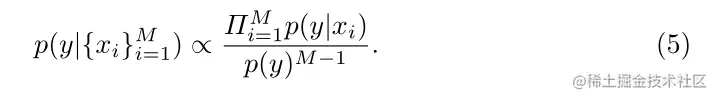 为了获得类先验p(y),可以简单地规范化每个类示例的计数。将ProbEn(4)扩展到M个模态: