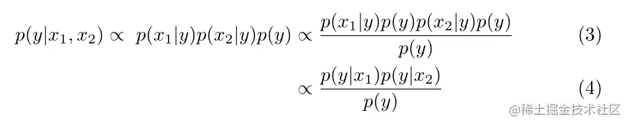 通过应用(1)至(2)的条件独立性假设,得到:
