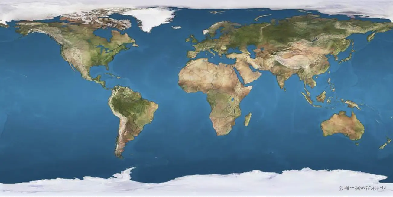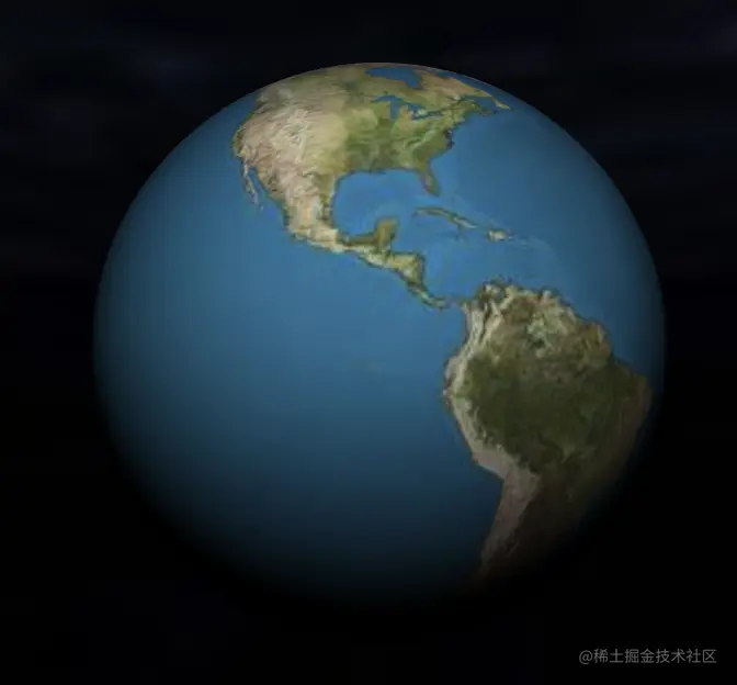 首先在网上找一张地球平面图,此处只需要用到前面三个参数即可new THREE.SphereBufferGeometry(10, 50, 50),效果图如下: