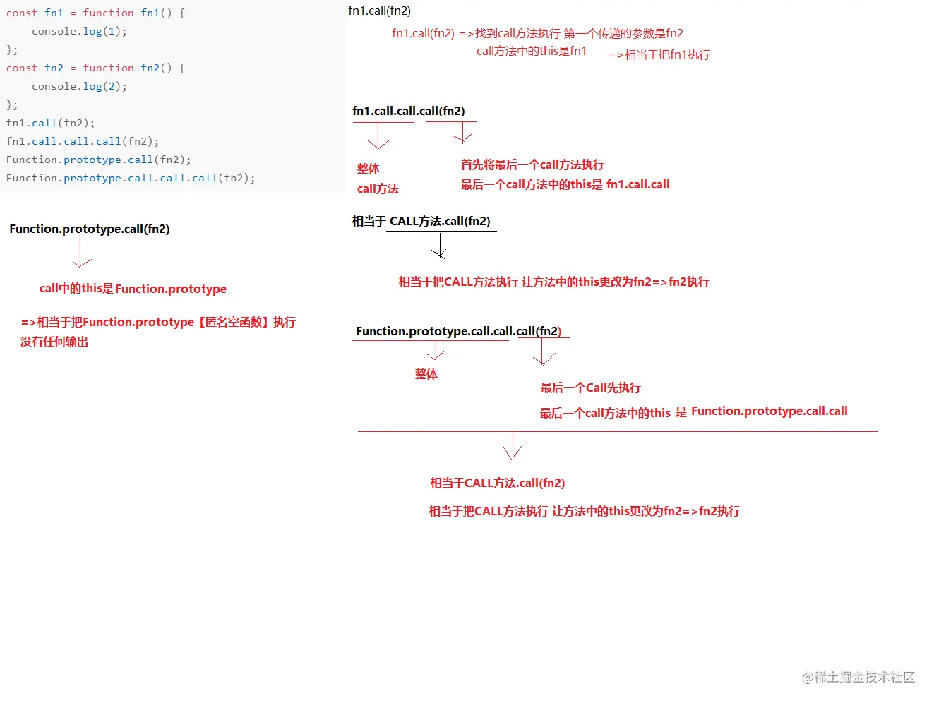 Function.prototype.call.call.call(fn2); //“CALL方法”.call(fn2) -> 让“CALL方法”执行,让它中的this是fn2 -> 相当于fn2执行 2