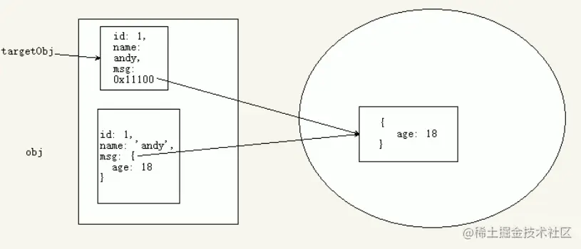 deep: 如果设为true为深拷贝,不写则为浅拷贝target:要拷贝的目标对象object1:待拷贝到第一个对象的对象。objectN:待拷贝到第N个对象的对象。- 浅拷贝是把被拷贝的 对象复杂数据类型中的地址拷贝给目标对象,修改目标对象会影响被拷贝对象。