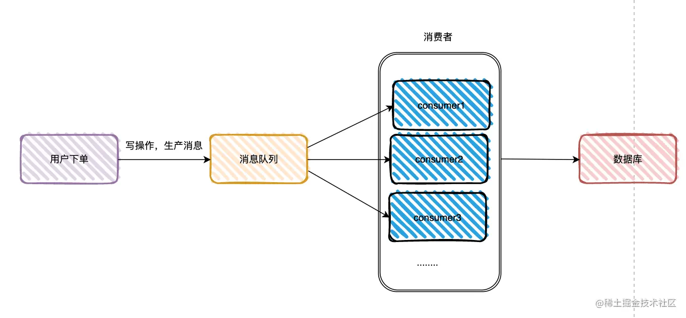 秒杀成功的请求,进入下单流程,这部分请求相比日常的请求量,也是一个瞬时的高峰写请求,这样高峰的写请求,对于数据库来说,也是比较大的压力,同时也使得响应延迟加剧。可能有的人会说,可以通过分库分表来解决。没错,分库分表一种解决方式,只不过这种方式增加了数据维护的复杂度,分库分表之后,想通过非分库分表字段去查询数据库,就要遍历所有库和表。如果需要批量查询,也要跨库跨表去查询,性能也是个问题,另外即使分库分表,如果平时没有预留多几倍的分库和分表,遇到这样的活动,还是要考虑扩展更多的分库来处理写流量,这样的扩展,还需要考虑数据迁移的问题。