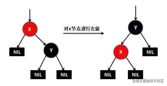 // 如果新插入x的叔叔节点是黑色或缺少,且x的父节点是祖父节点的左孩子