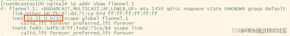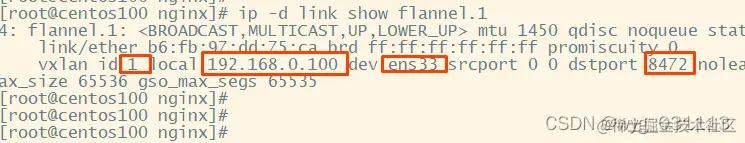 3. centos100的flannel.1 网卡为vxlan网卡,vni号为1.