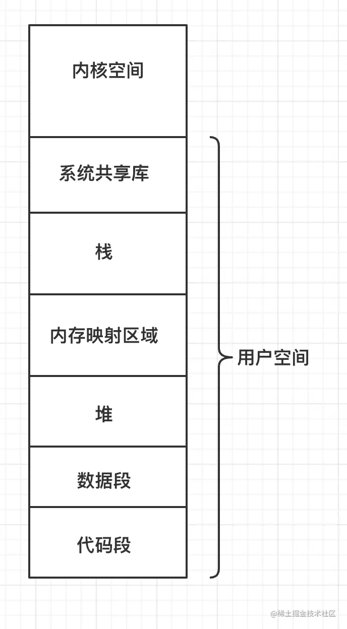 64位机器,进程内存地址从高到低分别是: 0xFFFF FFFF FFFF FFFF ⬇️ 内核空间 用户空间-保留区域 扩展使用区域 系统共享库 栈空间 内存映射区域(mmap) 堆空间 BSS段 DATA段 Text段 0x0000 0000 0000 0000