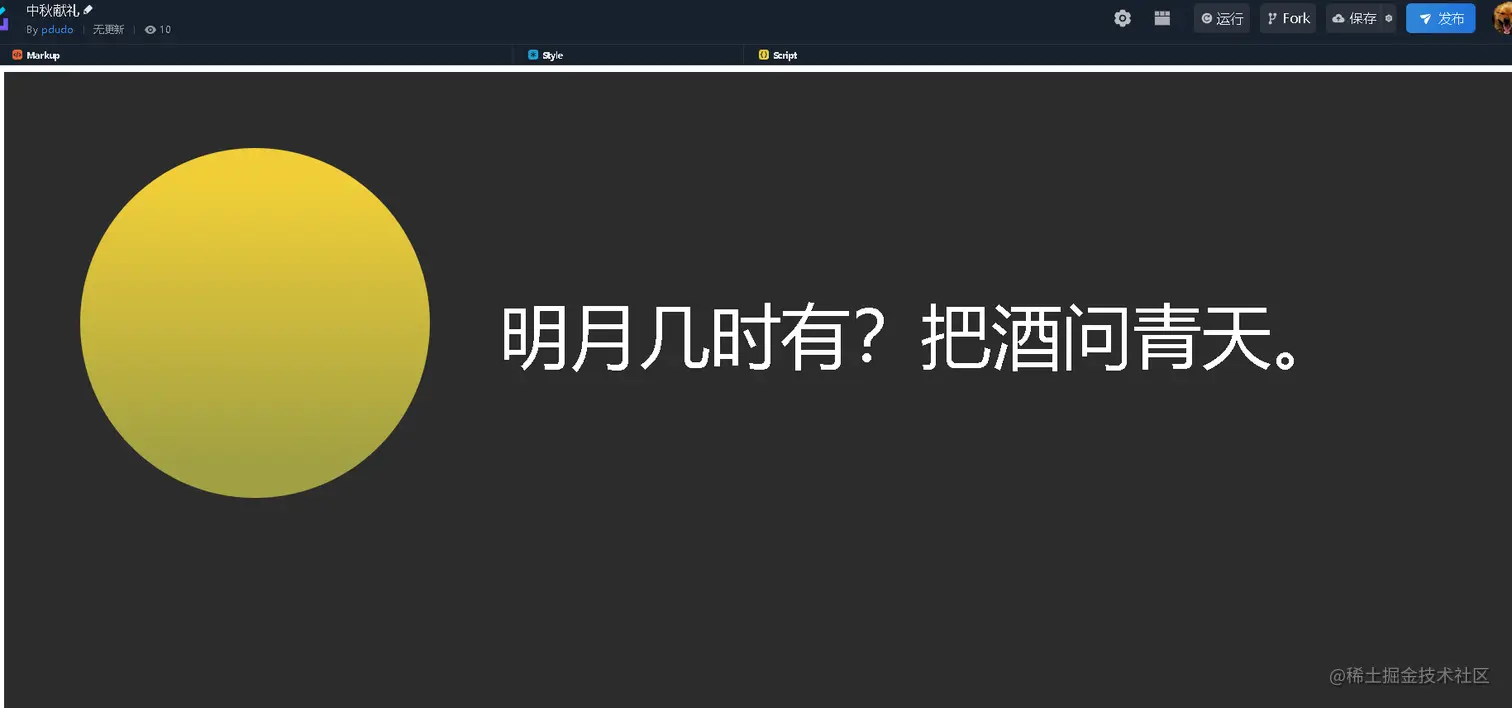 今天是2022年9月10日,虎年中秋,你收到中秋祝福了没? “但愿人长久,千里共婵娟”,今天我们使用vue做一个中秋祝福礼送给大家。