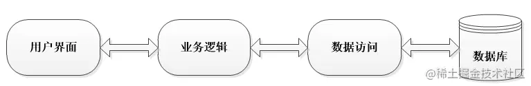 - 用户---> 界面层--->业务逻辑层--->数据访问层--->DB 数据库