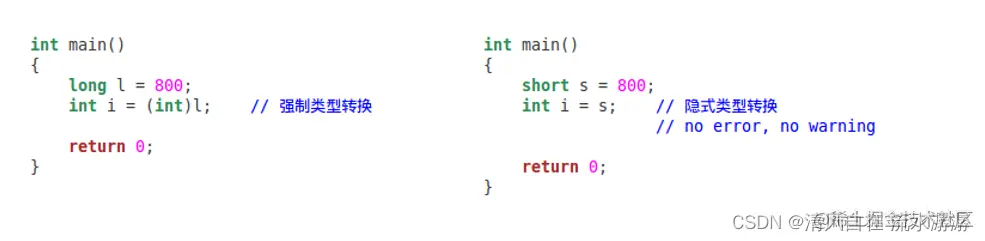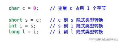 低类型到高类型的隐式类型转换是安全的,不会产生截断