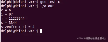 c 为 char 类型,s 为 short 类型,再进行四则运算前,各个比 int 窄的加数自动提升为 int,结果也为 int 类型,故 size 为4