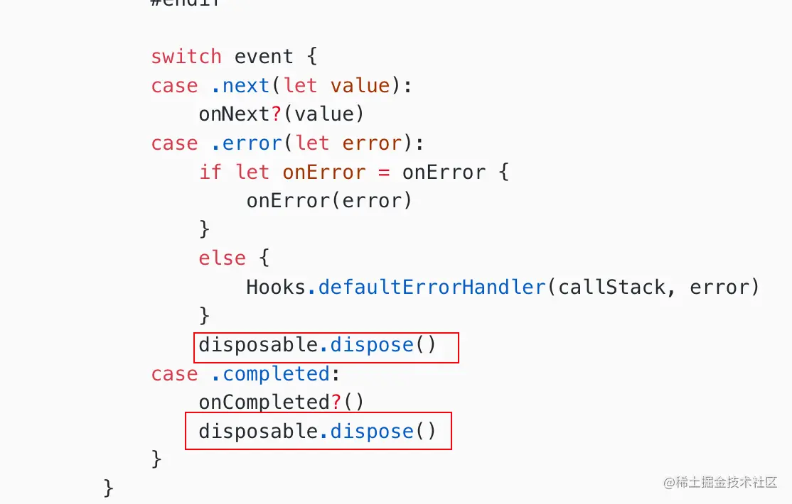 disposer.setSinkAndSubscription(sink: sinkAndSubscription.sink, subscription: sinkAndSubscription.subscription)这个句代码就是进行了sinkAndSubscription这个元组的销毁工作