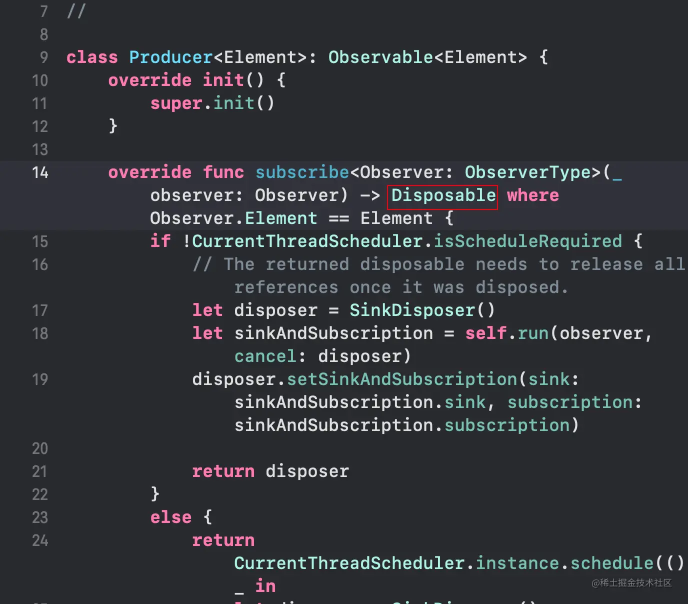 这个dispose方法是在什么时候进行调用,似乎在AnonymousDisposable里我们是没有看到的,我们一般都是订阅完之后再销毁的,因此猜测这个dispose() 方法在订阅里,下面开始分析subscribe()方法。