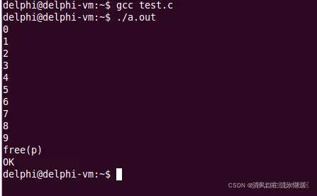 可以看到程序并没有输出 free(p),也就是说申请的内存并没有得到释放,造成内存泄漏。