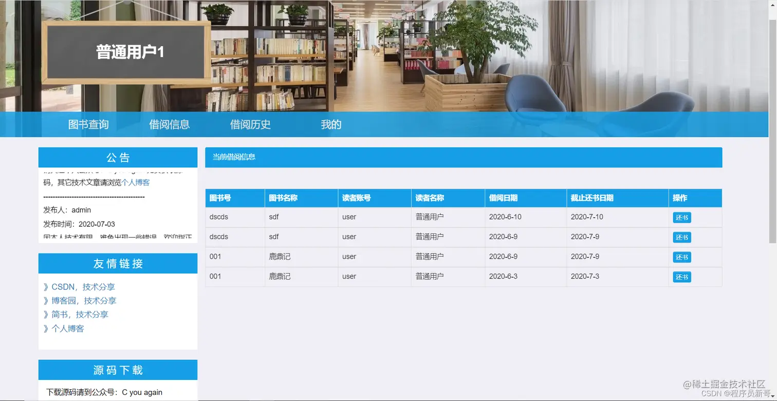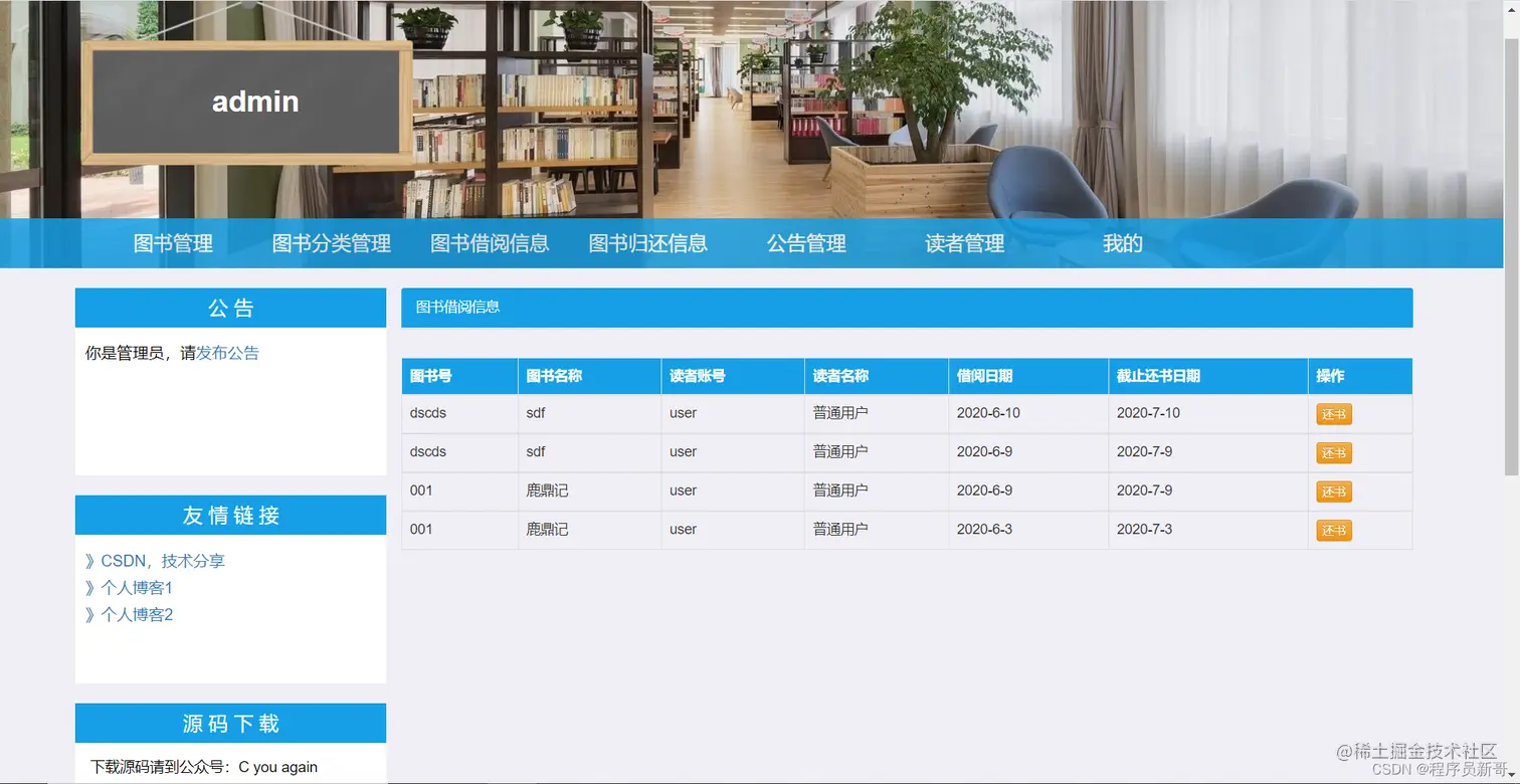 - 图书归还:展示所有已归还图书的信息。