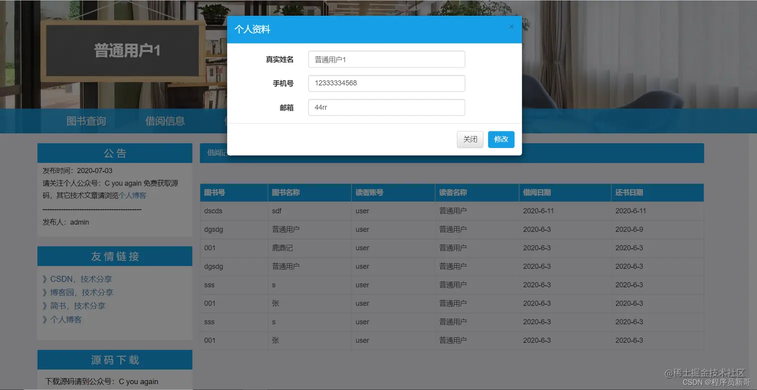 - 图书借阅:展示所有正在借阅图书的信息。