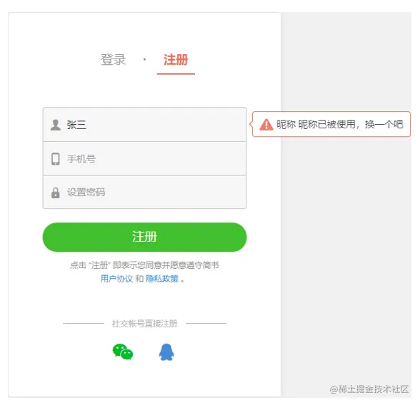 用户名检测:注册用户时,通过 ajax 的形式,动态检测用户名是否被占用