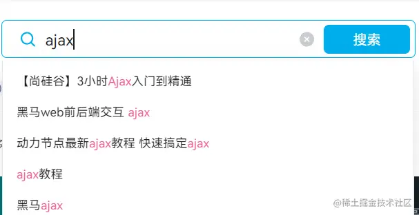 搜索提示:当输入搜索关键字时,通过 ajax 的形式,动态加载搜索提示列表