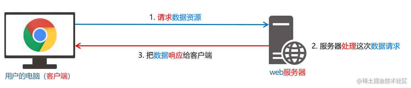 数据,也是服务器对外提供的一种资源。只要是资源,必然要通过 请求 – 处理 – 响应 的方式进行获取。