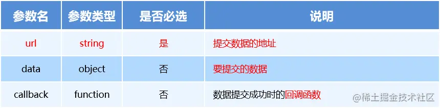 $.post() 函数的语法如下: