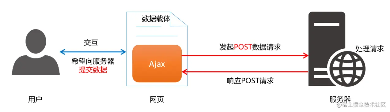 使用 $.ajax() 发起 POST 请求时,只需要将 type 属性的值设置为 'POST' 即可: