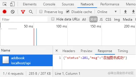 - 查看服务器响应的结果