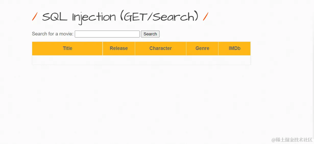 假设表名是movie,搜索的字段名是tittle(仅仅是猜测,并未代表真实的就是这样,在后续中我们可以得到真实表名和字段名),可以猜测sql语句如下: