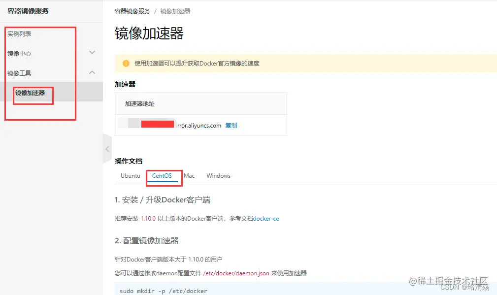 2.3 配置 Docker 镜像加速器(CentOS7)