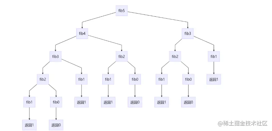 2.递归中很多计算都是重复的,由于其本质是把一个问题分解成两个或者多个小问题,多个小问题存在相互重叠的部分,则存在重复计算,如fibonacci斐波那契数列的递归实现。->效率