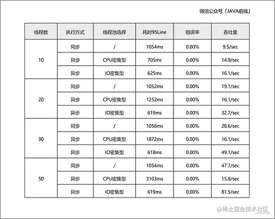 本文第一编写了同步和异步代码,并在代码中输出了耗时日志。第二分析单次执行同步和异步的表现,异步优于同步。第三结合不同线程池配置进行压测,如果线程池选择不合适,异步执行性能不如同步,所以要配置合适线程数。