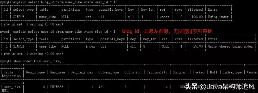 mysql> show index from blog\G;